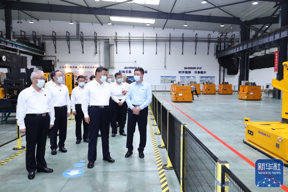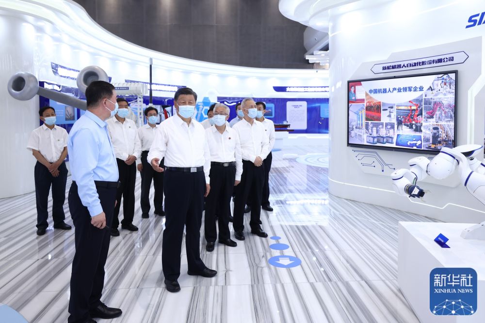 习近平17日在沈阳市考察调研。当天下午,他来到沈阳新松机器人自动化股份有限公司。在企业展厅,习近平听取辽宁新时代东北振兴整体情况介绍,察看辽宁先进科技产品集中展示,并考察了新松公司生产经营、自主创新情况。企业生产车间内,工业机器人、协作机器人、特种机器人等正在进行测试。习近平向技术人员和企业职工询问企业开展核心技术攻关等情况,对企业自主创新和产业化发展取得的成绩予以肯定,表示新松公司体现了中国速度、中国水平。