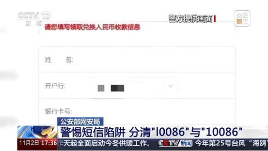 近日,居民杨先生收到“积分清零”“积分兑换空气炸锅”的提醒短信。看到短信误以为是10086运营商发来的,而且短信里的网址又与真实网址相似。