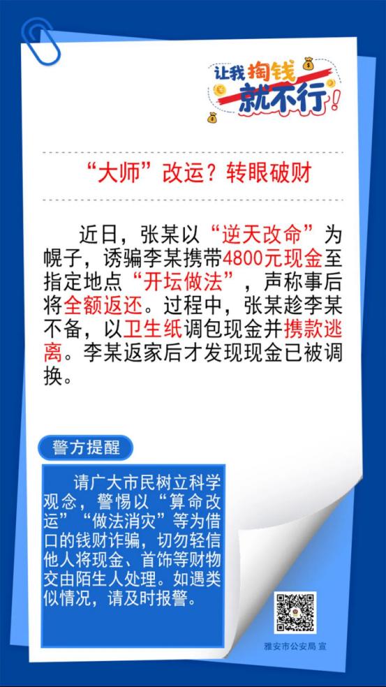 文才子声称对方“印堂发亮”将有横财,但需花钱“开光改运”才能获取。