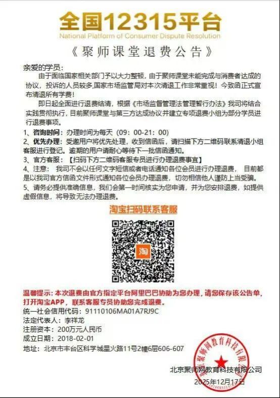 2025年6月,资阳市小李(化名)为学习工作技能,花2.2万元在某网络平台报名线上课程。后因工作搁置,还有一部分课程未学完,由于当时精力全被工作占据,小李便未放在心上。近期,她突然收到一份快递,里面竟是她之前报名的网络课程退费公告和退费二维码。