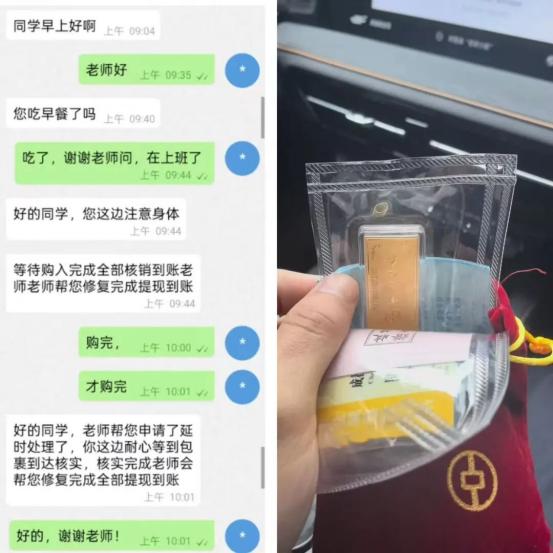 就在小李沉浸在“盈利”喜悦中时,客服告知:已为她申请到5000元专场基金,返利可达25%。小李充值5000元后提现时系统突然显示“操作错误”。随后,小李咨询客服,对方告知:“因其未按照规定程序进行操作,所以账户暂时被冻结,但只要再次认购相应的基金修复数据,就可以将之前和本次认购的资金提现到账”。接着,对方又以“线上转账受金融监管,可能导致银行卡风控冻结”为由,让小李通过线下“购买黄金交付给指定人员”的方式修复数据。在长达1个月的时间里,小李不断“整改”、不断“出错”,先后购买10次黄金交给指定人员用于“解冻退费账户”,直至无钱可用时才幡然醒悟,最终损失90余万元。