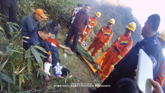 经医护人员现场检查,尹女士因双腿骨折,疼痛和惊吓让其身体已十分虚弱。救援人员小心翼翼地为尹女士固定好伤处,随后,众人抬着担架,用时一小时将尹女士安全转移至山下,立即送往医院救治。